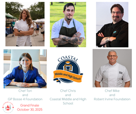 Three top chefs — Chris Spinosa, Tori Rivera, and Mike Andrzejewski — return to the Culinary Studio kitchen for one final battle, each cooking their hearts out for their partner charity: Coastal Middle & High School, GP Bosse 4 Foundation, and the Robert Irvine Foundation.