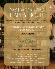 Hosted by Greg Cohen, Dave Schultz with Smith, Ball, Baez & Prather Florida Injury Lawyers, & Relevant Marketing, this event is the perfect opportunity to meet local professionals, grow your network, and enjoy a fun, relaxed atmosphere.