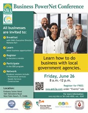 Join the Solid Waste Authority of Palm Beach County for a networking opportunity to learn how to do business with local governmental agencies. Following breakfast, attendees will learn about upcoming SWA business opportunities, how to register as a vendor to get government contracts, and how to participate in the SWA’s Equal Business Opportunity program.