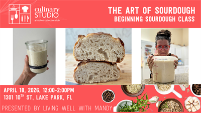 In this beginner’s sourdough bread class, Mandy will teach you her simple, laid-back approach to making delicious artisan bread at home on any schedule and at any skill level. Mandy will be doing the demonstration and there will be opportunities to assist.