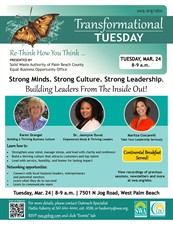 Join the Solid Waste Authority of Palm Beach County's Equal Business Opportunity team for a small business development seminar. These monthly Transformational Tuesdays are to engage our small business leaders to rethink their habits, learn innovative strategies, and get ready for a new way of thinking that will propel them to the next level. But, it is more than just a training. It’s a powerful mental reset for professionals, leaders and business owners.